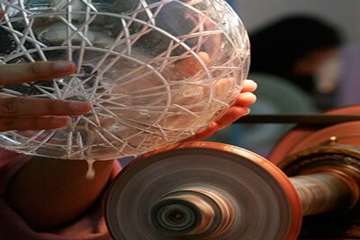 El torno de vidrio es uno de los métodos más populares y comunes de decoración en frío de obras de vidrio, que se remonta a la era aqueménida en Irán.