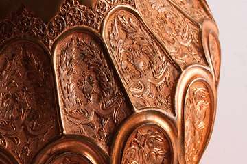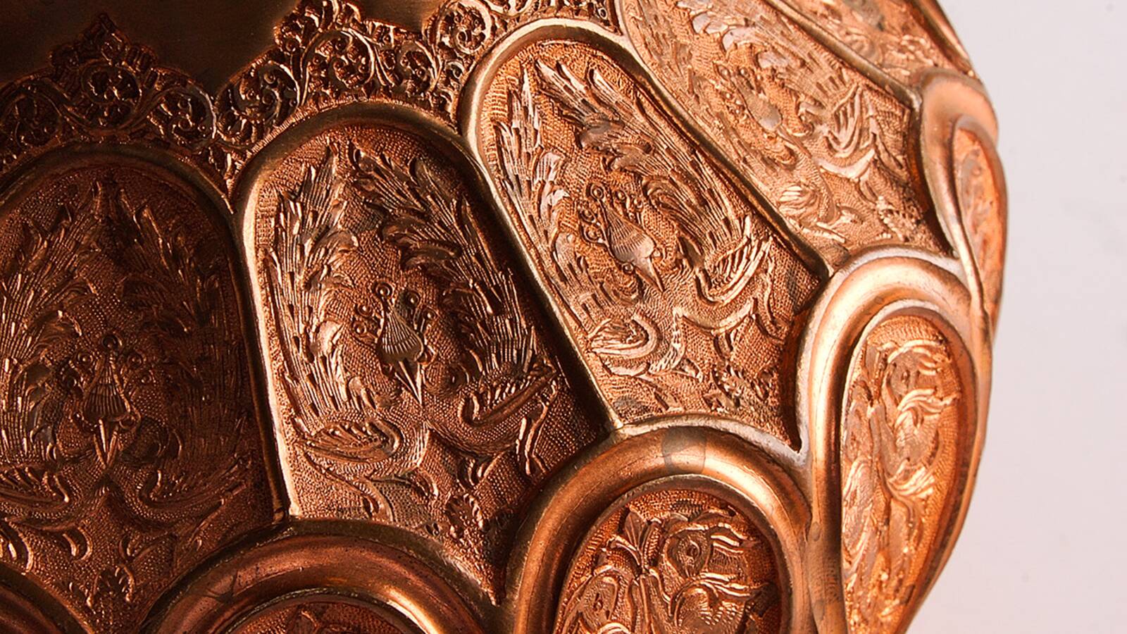 En otras palabras, La toréutica generalmente se refiere a la decoración y el grabado de bellas y exquisitas imágenes sobre metales.estos metales están hecho de oro, plata, cobre, latón y acero que se han hecho mediante martilleo o grabadopor manos de artistas. Entre estos metales, el cobre es más popular debido a su suavidad y flexibilidad.La atención principal de los artistas es la notable longevidad y durabilidad significativa  de estos productos que otros objetos hechos con otros materiales.
