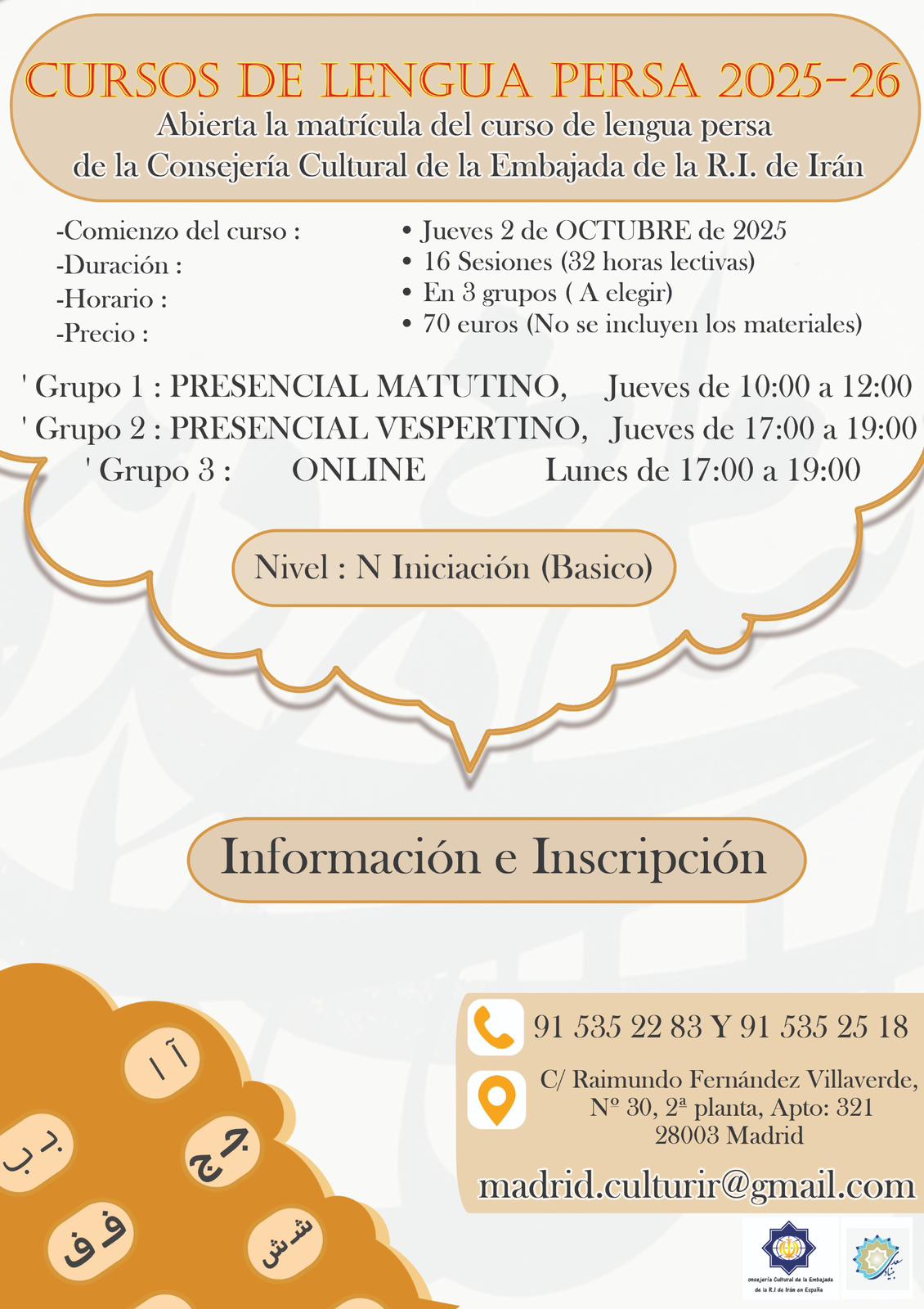 Abierta la matricula del curso inicial (Nivel N) de la lengua persa 2024-2025
